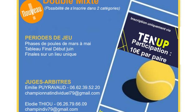 Sous TEN UP, lors de votre inscription, dans la rubrique commentaire, merci de noter le NOM et PRENOM de votre binôme.