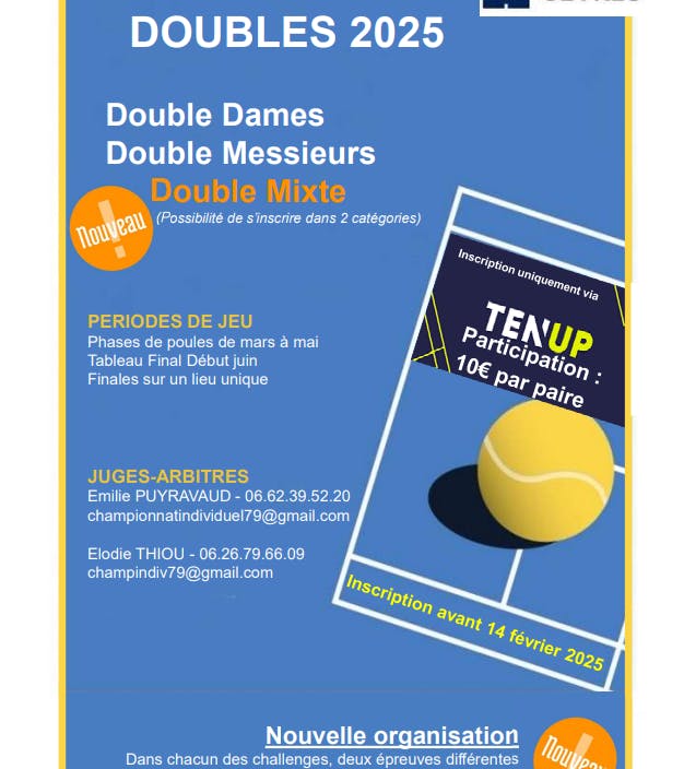 On vous attend nombreux pour ces challenges de doubles sportifs et conviviaux…